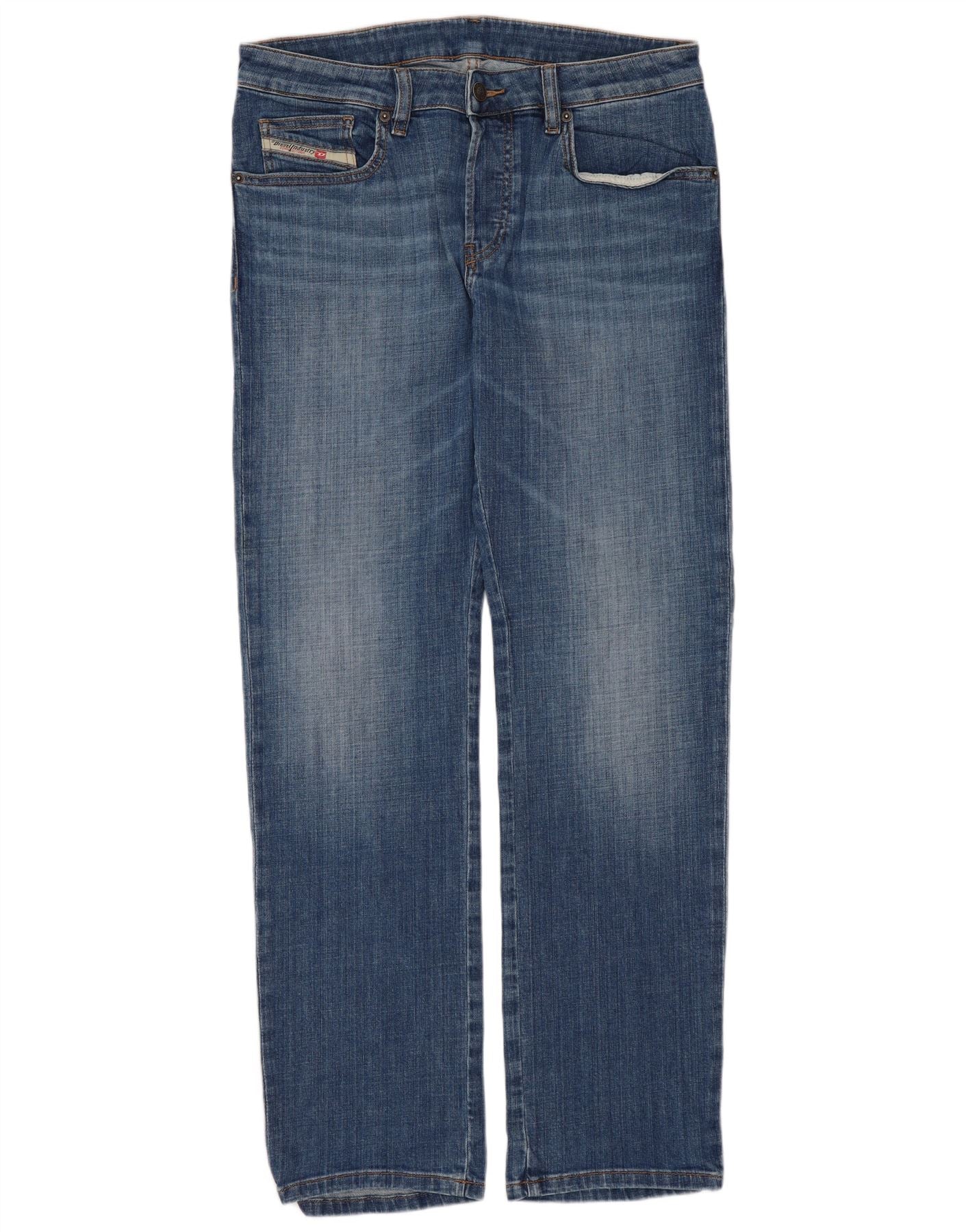 - AI Description: These Diesel men's straight jeans are crafted from blue denim with a comfortable stretch. The 98 percent cotton and 2 percent elastane blend ensures both durability and flexibility. They feature a classic button closure and a straight fit through the leg. Practical pockets and a subtle branded logo accent complete the design, offering a timeless and versatile look.
