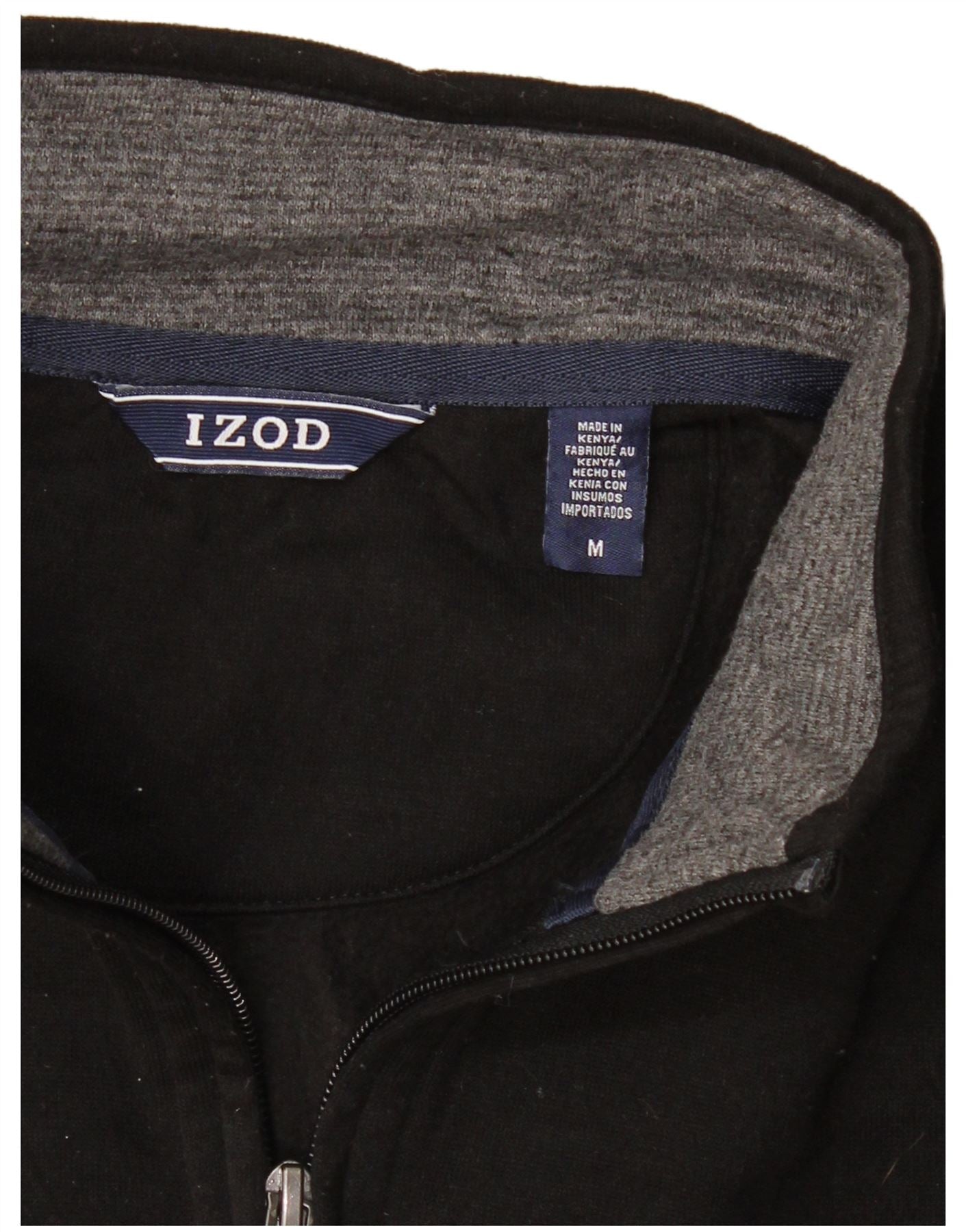 - AI Description: This Izod mens sweatshirt jumper is crafted from soft black fleece fabric. It features a high neck and a 1/4 zip closure for versatile styling. Long sleeves and a regular fit ensure comfort and ease of movement. A subtle logo accent adds a classic branded touch. This pullover style offers a breathable and comfortable wear, perfect for everyday casual attire.